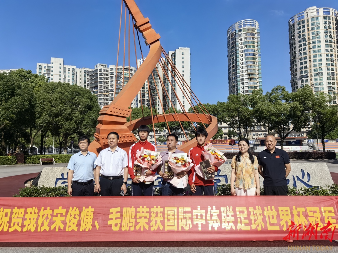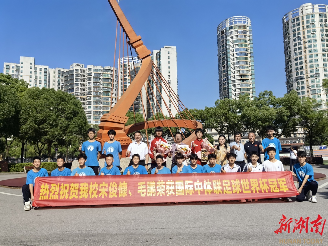 5月26日,2024年国际中体联足球世界杯男子组决赛在大连梭鱼湾足球场举行,中国男子一队通过点球大战以总比分7比5战胜乌干达一队,夺得冠军。夺冠队员中,毛鹏、宋俊慷是来自长沙麓山国际实验学校的高中生,也是唯一的湖湘学子。