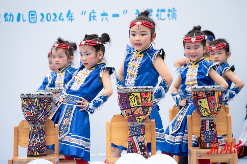 5月29日,永州市冷水滩区银象幼儿园,小朋友在表演节目。当天,该园开展“童心向党 筑梦未来”文艺汇演活动, 小朋友通过舞蹈、击鼓、朗诵、走秀等形式展示才艺,在欢乐的氛围中迎接“六一”国际儿童节的到来。雷中祥 蒋凌志 摄影报道(湖南图片库)