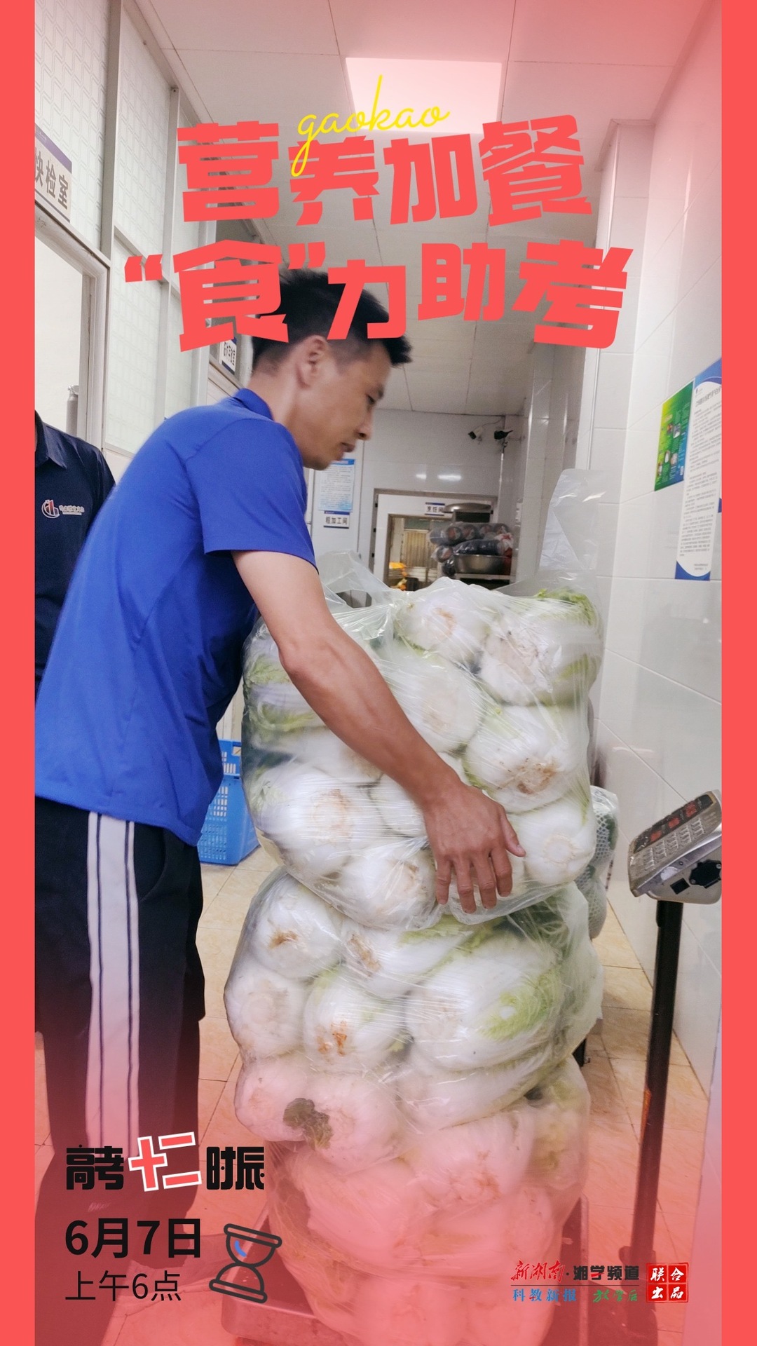 6月7日上午6点,江华瑶族自治县第一中学采购的新鲜食材抵达,食堂工作人员加紧搬运、备菜,为考生准备营养午餐。邓代胜/摄