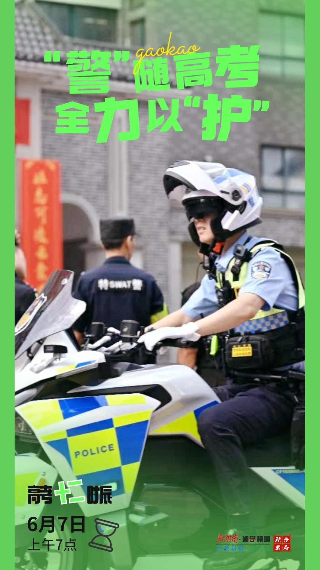6月7日上午7点,长沙明德华兴中学考点外,特警、交警早早到达,严阵以待,为考生保驾护航。龙力/摄