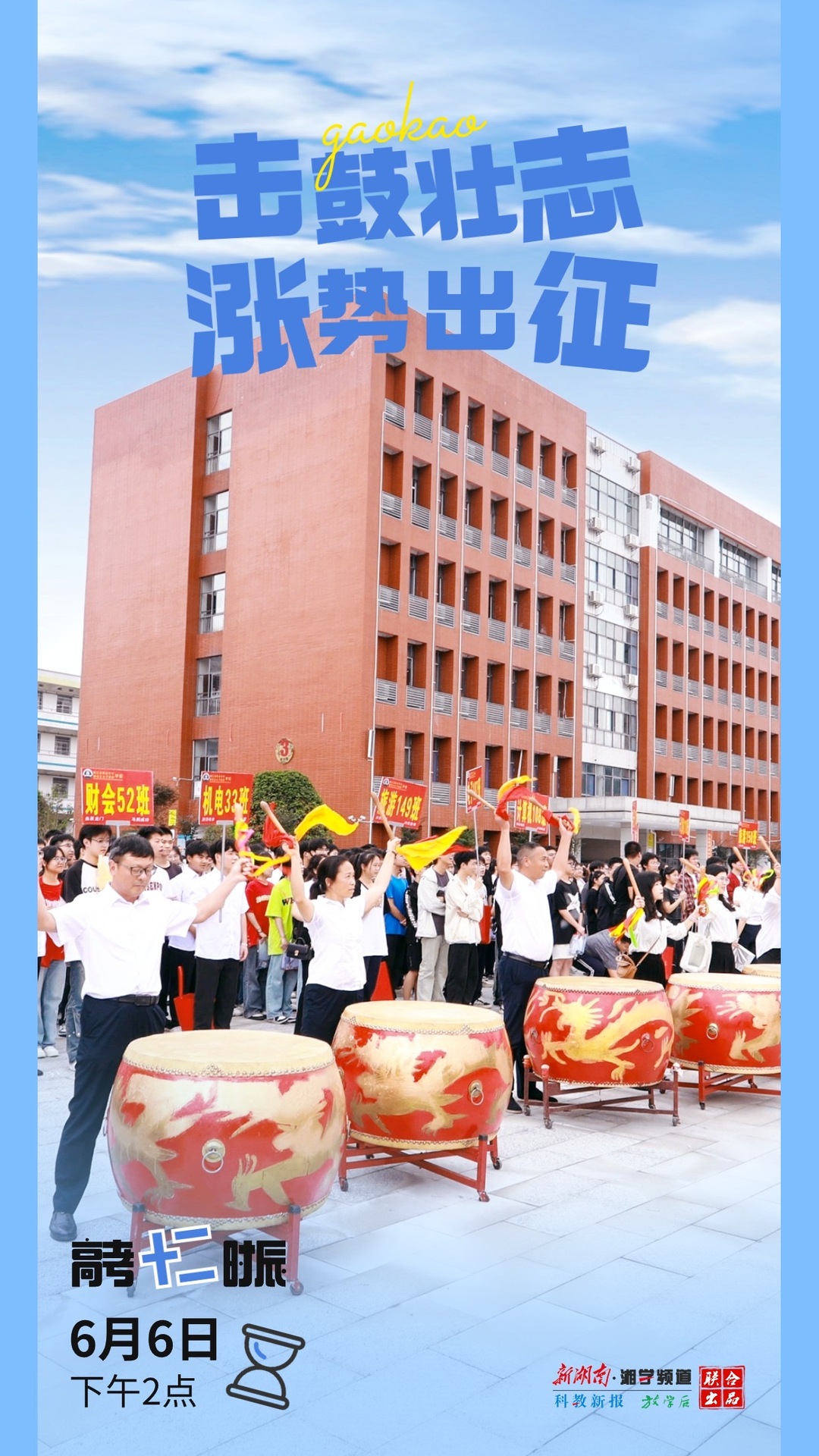 6月6日下午2点,桃江县职业中专学校为考生举行出征仪式,老师擂响战鼓,学生涨势出征。薛博才/摄