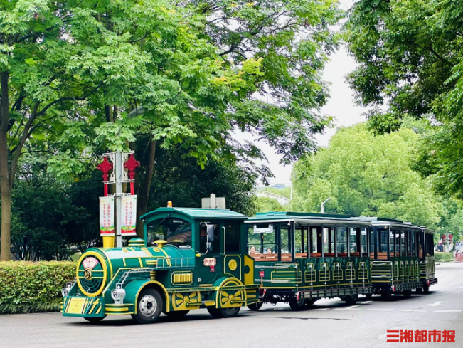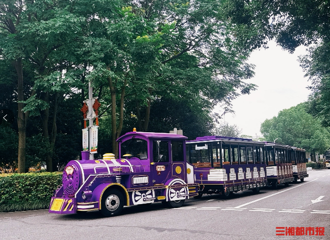 据悉,这“绿意”和“紫韵”正是城发橘子洲新引入的两款观光小火车——绿色邮政小火车和紫色时尚小火车。绿色小火车以其复古的设计和温馨的绿色调,唤起了人们对旧时光的美好回忆,深受中老年游客的喜爱;而紫色小火车则凭借其时尚炫酷的紫色涂装,迅速吸引了大量年轻游客的目光,展现了时尚与活力的魅力。