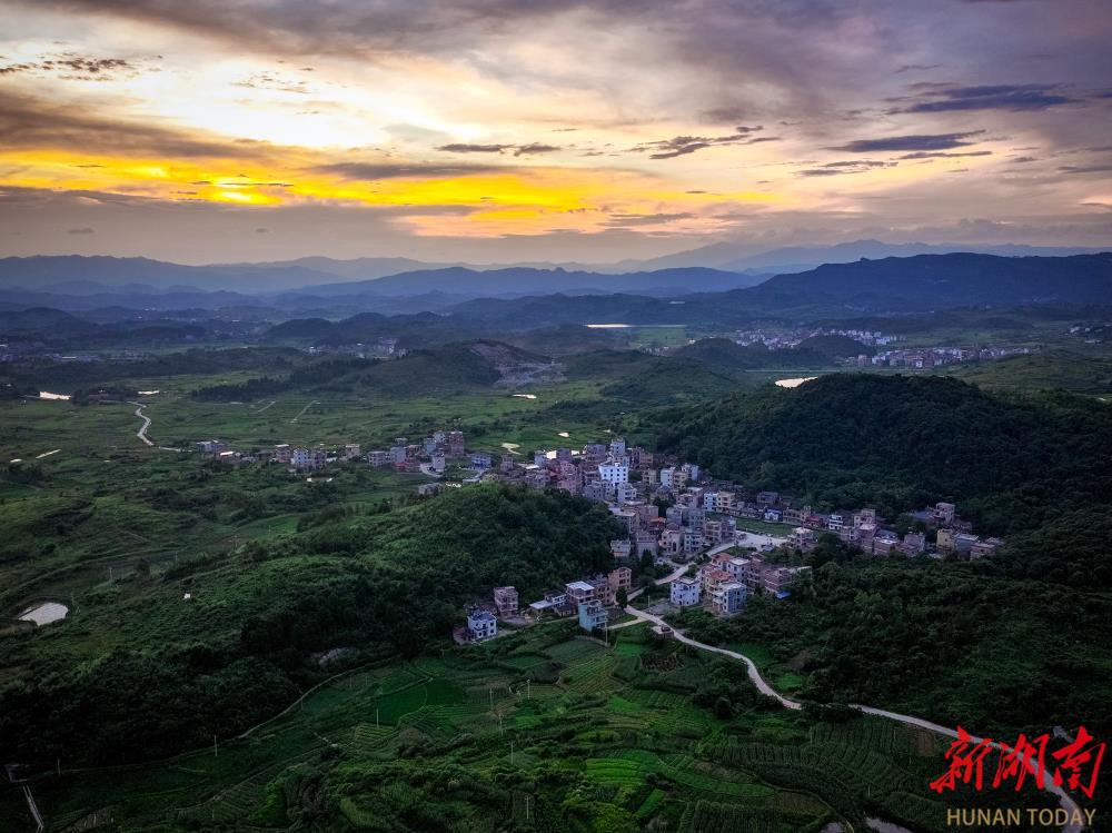 6月28日,宁远县保安镇坪石村,错落有致的民居与阡陌田园、葱郁青山、蜿蜒道路相映成趣,构成了一幅乡村田园生态画卷。近年来,该县持续加强美丽乡村、农村道路和水利建设,优化农村人居环境,打造生态宜居的和美乡村,通过大力发展农业产业与引导乡贤回村创业,带动村民增收致富,助力乡村全面振兴。(湖南日报•新湖南客户端通讯员 李文 摄)