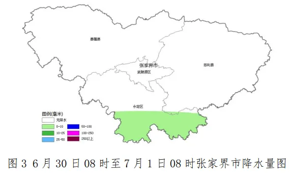 据气象资料综合分析,本轮强降水接近趋于结束,需注意防范地质灾害的滞后性。29 日切变南压,张家界市逐渐雨停转多云,30 日后副高加强北抬西升,张家界市处于副高边沿,午后到傍晚多不稳定对流,气温逐步走高。