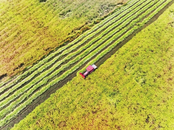 (农机手驾驶收割机收获油菜籽。资料图。柏依朴 摄)