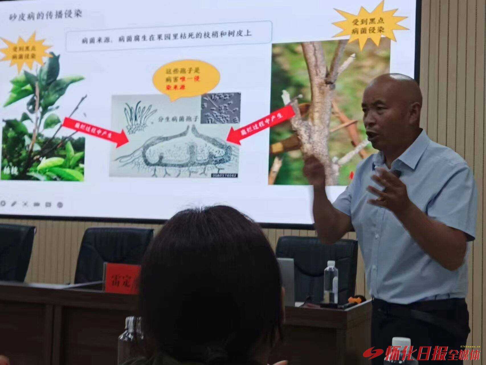 “把多余的枝叶剪掉,冰糖橙才长得好哦!”6月下旬,记者走进位于麻阳苗族自治县岩门镇新坪村的雷定水种植家庭农场,农场负责人雷定水正在给柑橘种植户现场教学。