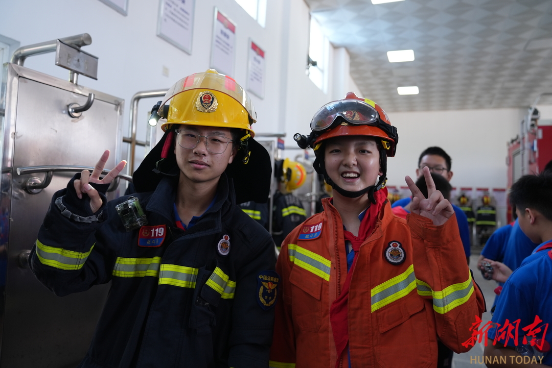新湖南客户端7月9日讯(通讯员 陈洁娈)为引导少先队员认识火灾危害,掌握防火知识,树牢消防安全意识。7月6日,长郡外国语实验中学2323班走进长沙市天心区消防救援大队,开展以“‘红领巾’,走进消防站致敬‘火焰蓝’,消防安全伴成长”为主题的社会实践活动。