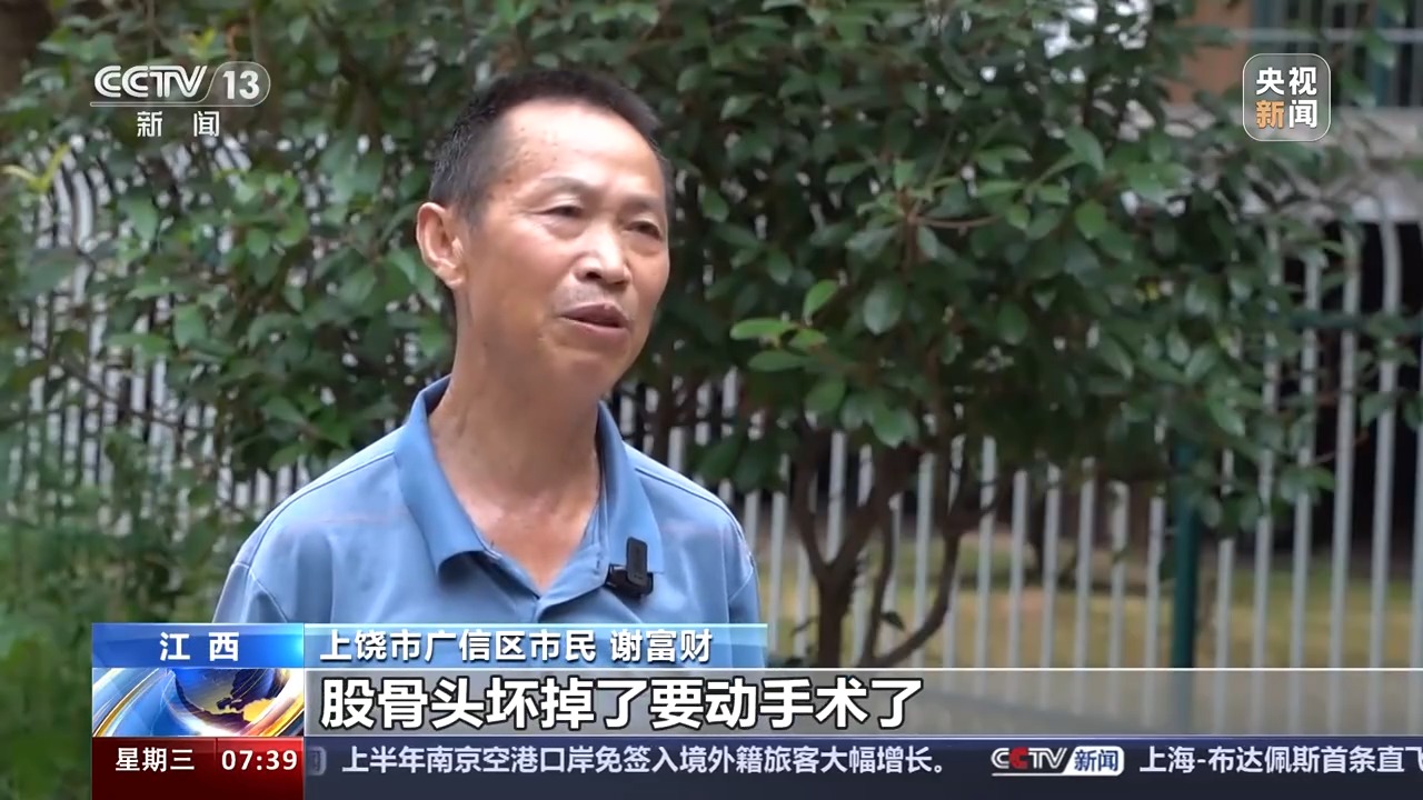 江西省上饶市广信区市民 谢富财:股骨头坏掉了要动手术了,以前人家讲要七八万元。医生讲现在有医保,有集中采购,这个政策真的是非常好的。