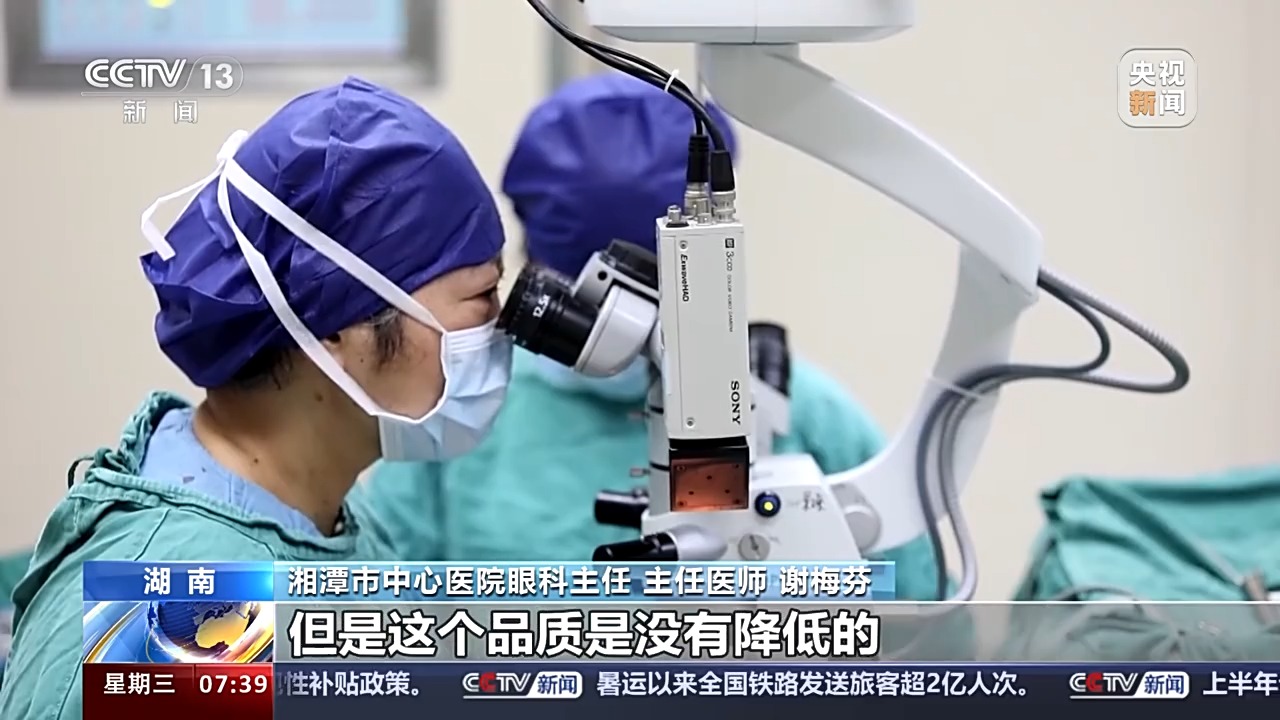 湖南省湘潭市中心医院眼科主任、主任医师 谢梅芬:集采以后人工晶体有些从2万多元降到了1万多元,有些从1万多元降到了几千块钱,但是这个品质是没有降低的。