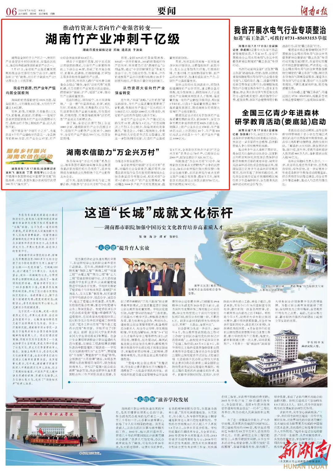 湖南是全国竹子主产区之一,发展竹产业是促进乡村经济发展、提高农民收入、推动绿色低碳发展的重要产业之一。
