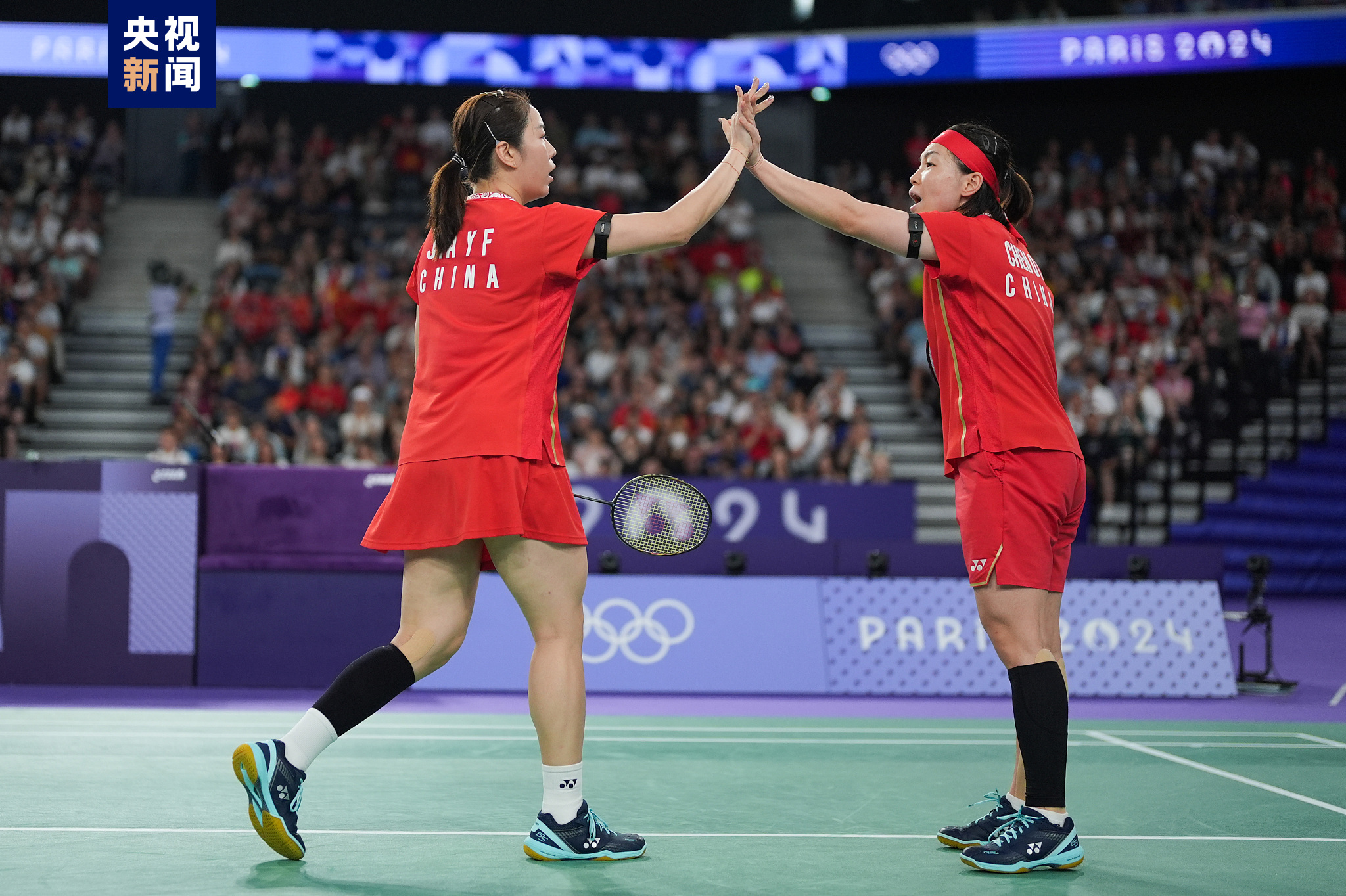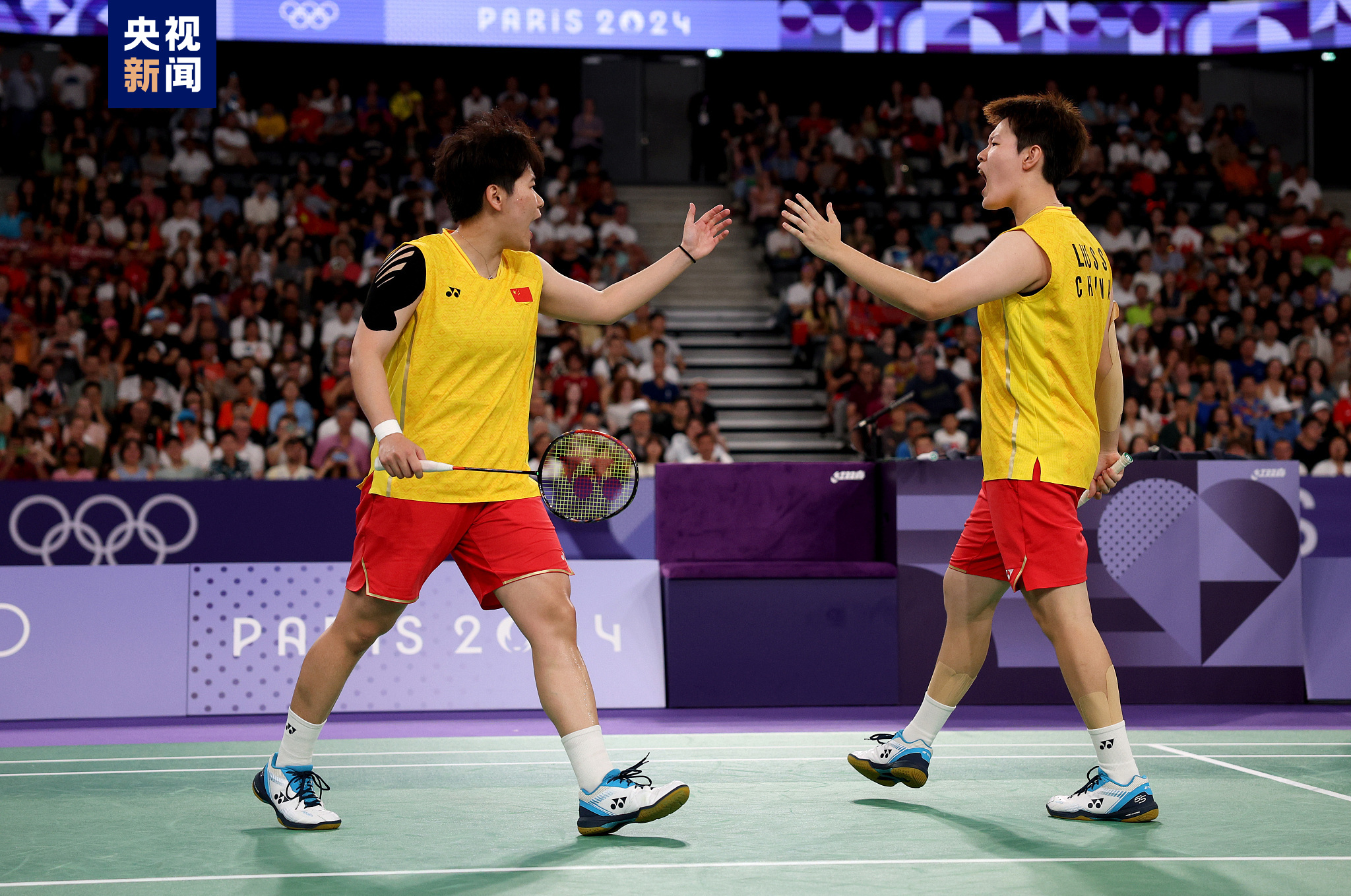 在巴黎奥运会羽毛球女子双打金牌赛中