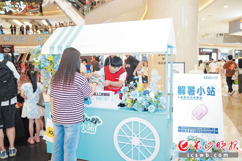 步步高梅溪新天地的解暑小站,为顾客送清凉。