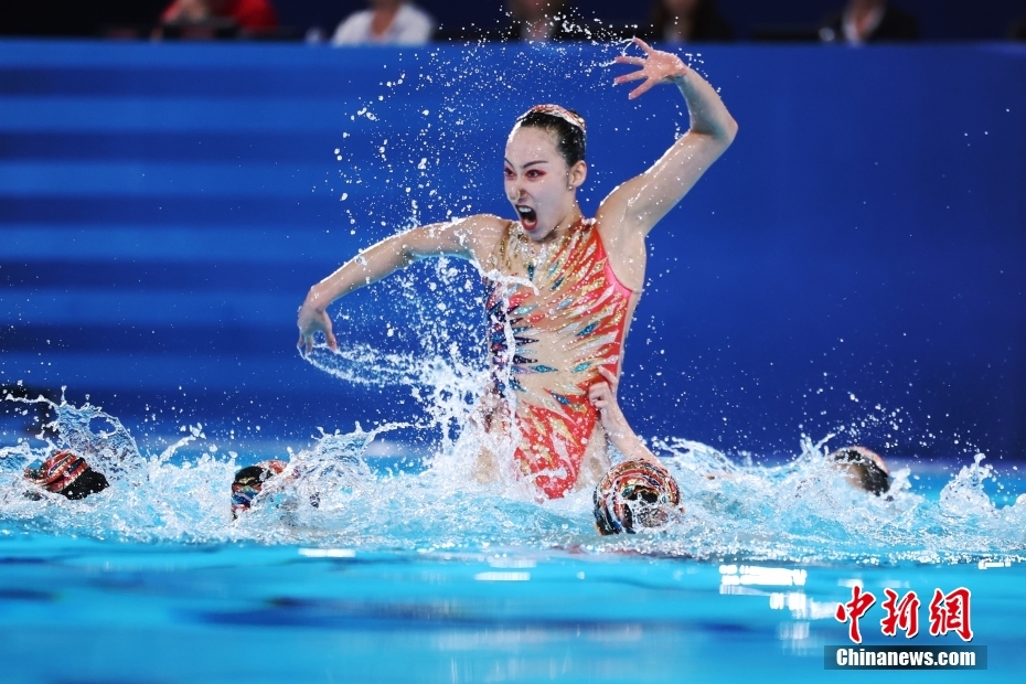 中国花样游泳队在比赛中。