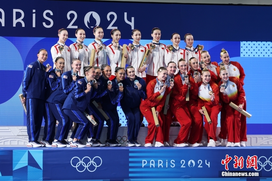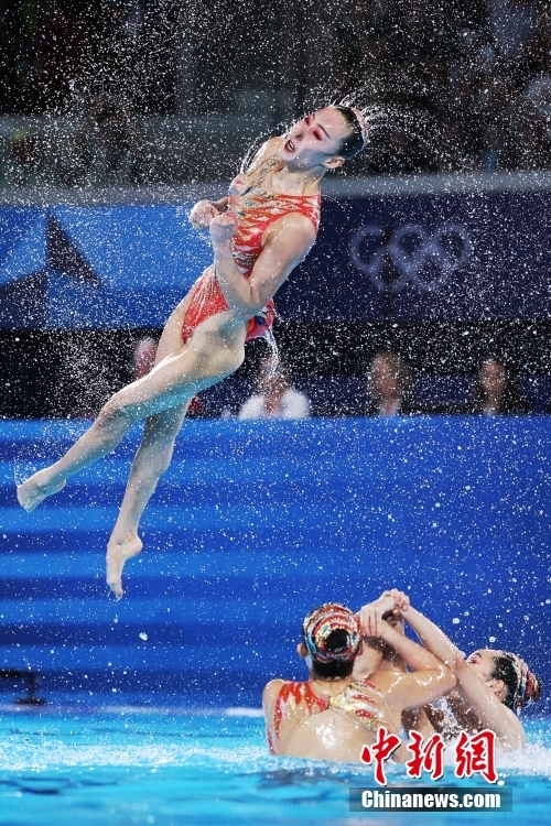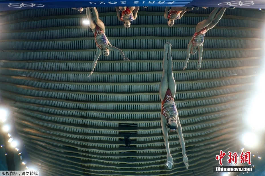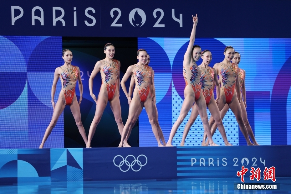 当地时间8月7日,中国队在比赛中。当日,巴黎奥运会花样游泳集体项目的最后一项比赛集体技巧自选在巴黎奥林匹克水上运动中心举行。中国队夺得花样游泳集体项目金牌。