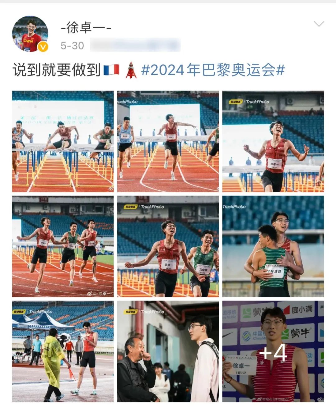 △冲进巴黎奥运会后,徐卓一在社交媒体上回应自己:“说到就要做到!”
