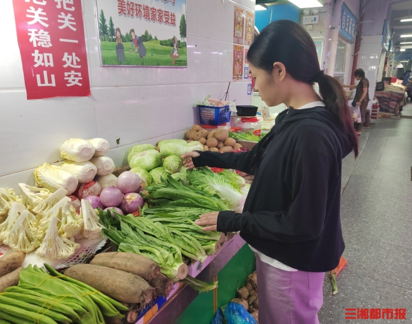 (在长沙一家生鲜市场,一市民正在选购蔬菜。)