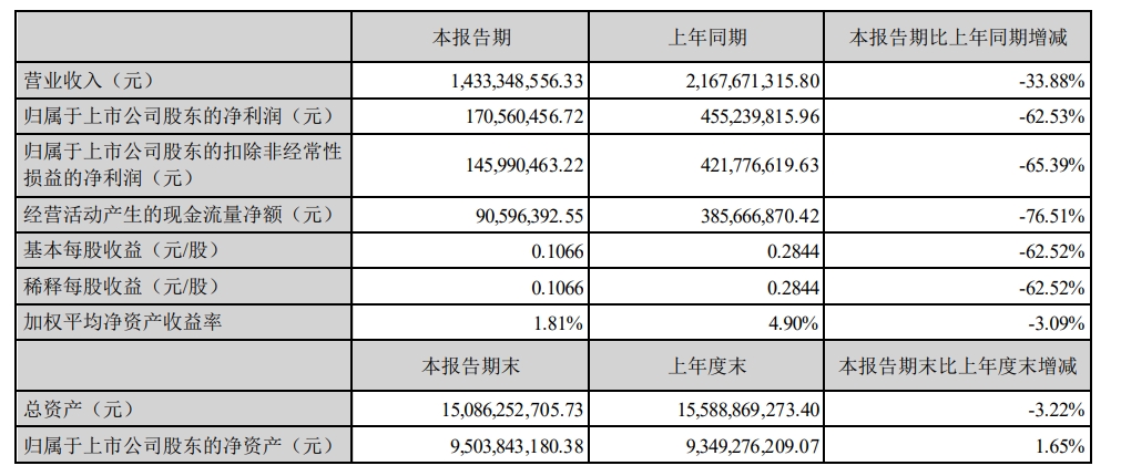 8月27日晚间,云南沃森生物技术股份有限公司(沃森生物,300142)发布2024年半年报,上半年营业收入14.33亿元,同比下降33.88%;归母净利润1.71亿元,同比下降62.53%;归母扣非净利润1.46亿元,同比下降65.39%。