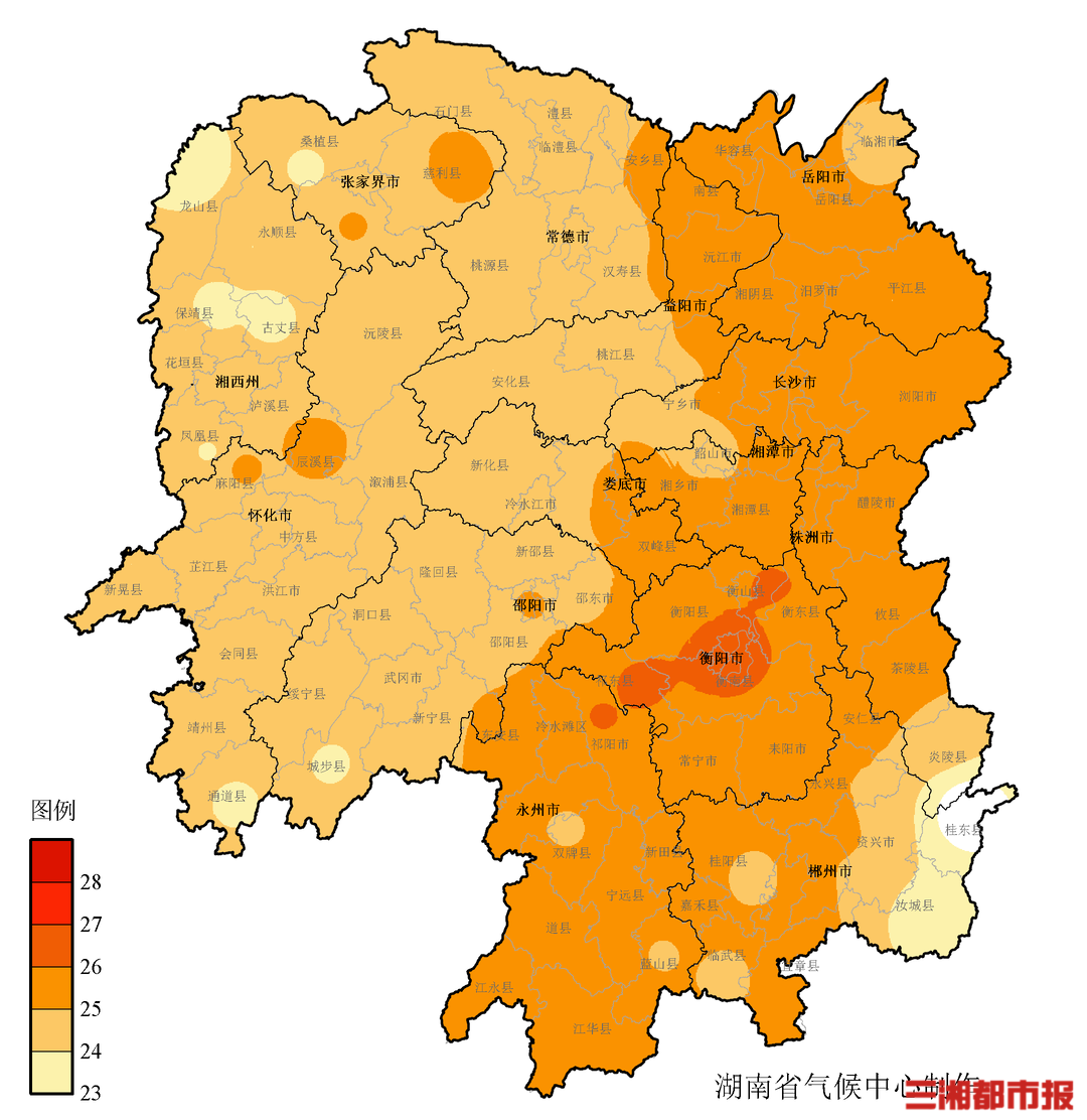 三湘都市报·新湖南客户端8月30日讯(全媒体记者 李致远 通讯员 林城)8月30日,记者从湖南省气象台、湖南省气候中心了解到,预计我省岳阳、长沙、湘潭、株洲、衡阳、永州、郴州等地区的9月平均气温为25~27℃,其他地区为23~25℃;和常年同期相比,全省大部地区气温偏高1℃左右。