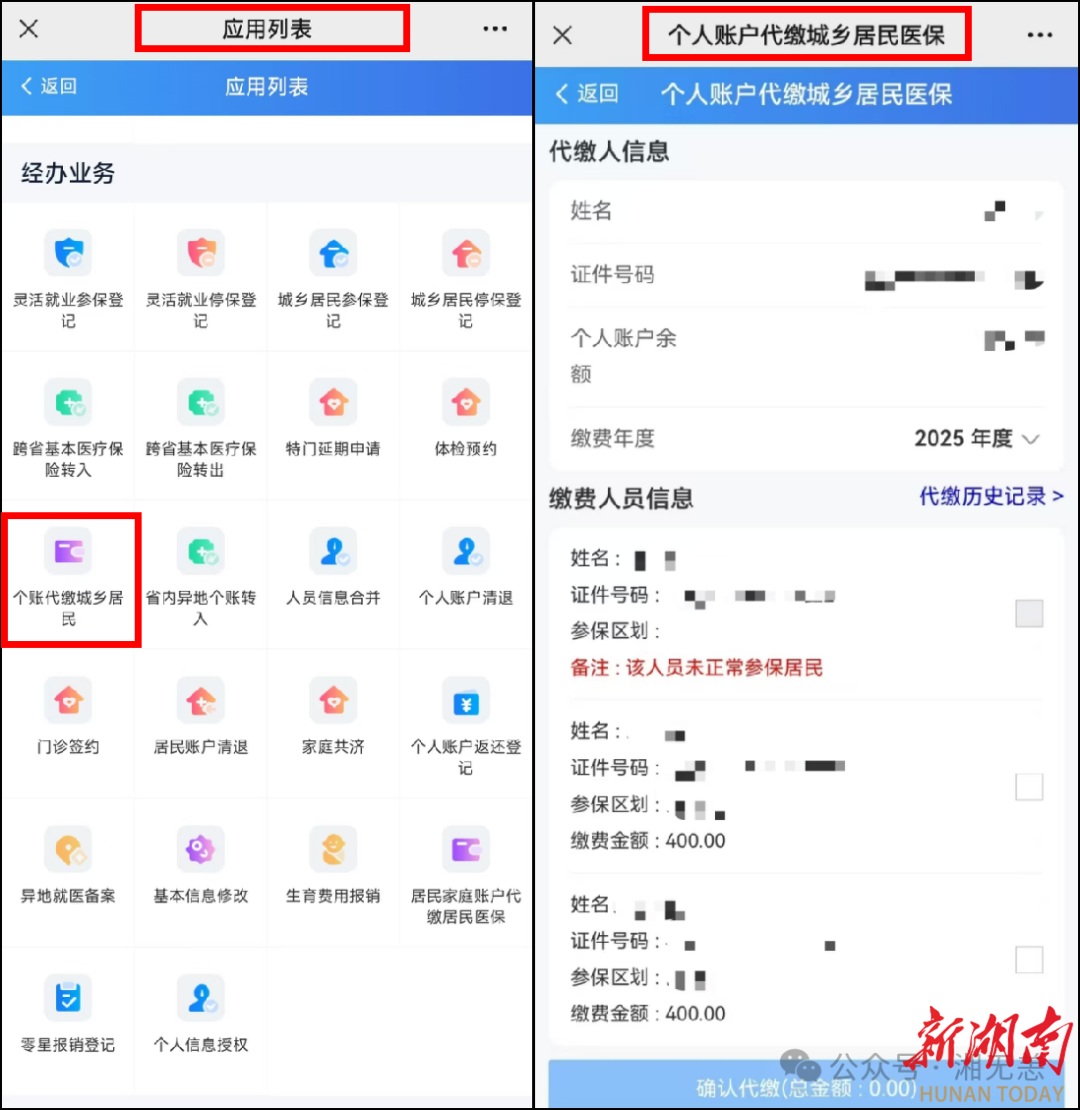 湖南日报9月4日讯(文字/视频 全媒体记者 周倜 通讯员 湘无恙)9月1日起,2025年度居民医保参保缴费工作正式开启。除了大家熟悉的“湘税社保”缴费渠道外,还可以使用参保职工的个账余额为近亲属(范围:配偶、父母、子女、兄弟姐妹、祖父母、外祖父母、孙子女、外孙子女)代缴居民医保费。那么,具体怎么操作呢?记者今天予以梳理。