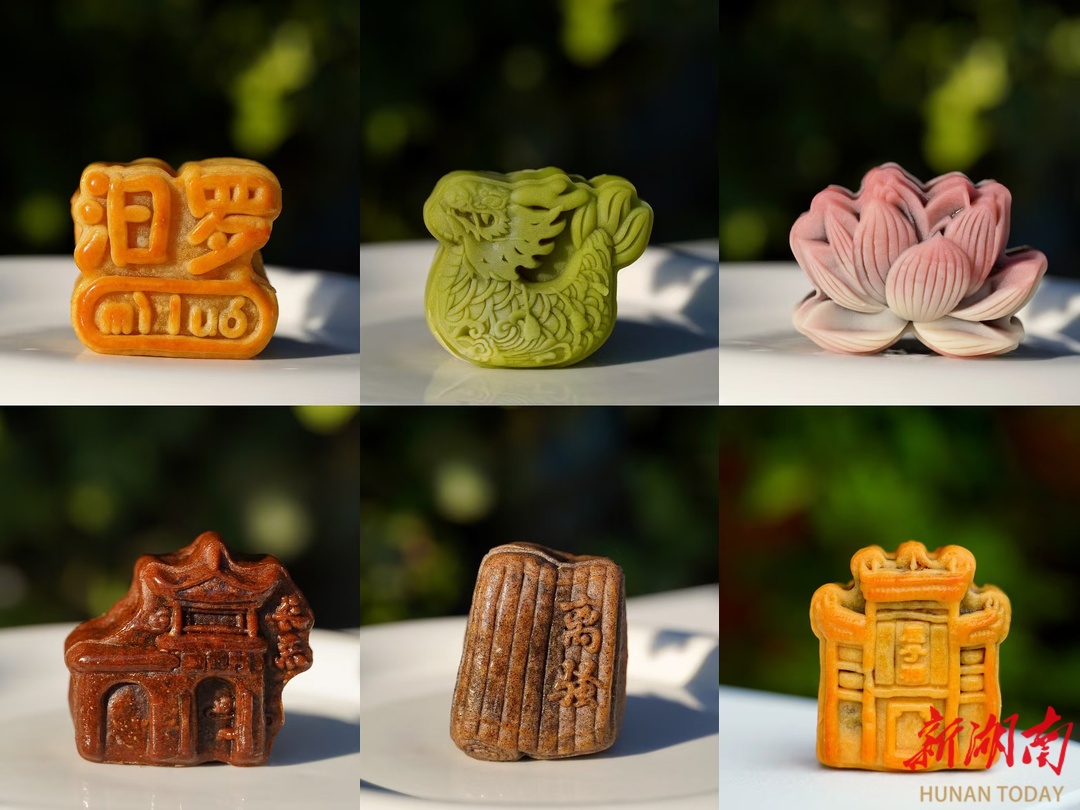 这组手工月饼出自汨罗市一梵手作甜品工作室,设计者是工作室所有者、汨罗姑娘王华。汨罗芒果文旅有限公司联合工作室出品,共同打造成汨罗文创礼盒,并将礼盒在屈子文化园上架。