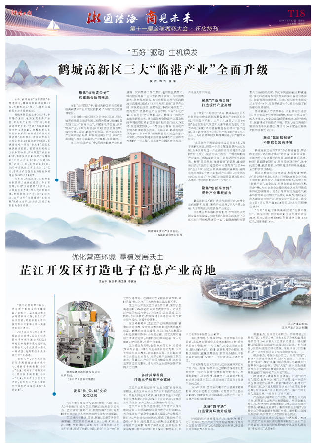 并将鹤城人力资源中心、人社驿站引进园区,使企业招才引智更加便捷,形成“近悦远来”的人才生态,为企业营造低要素成本、低行政成本、低管理成本的投资环境。同时,设立潇湘财银贷白名单风补基金,累计为20余家企业提供无抵押贷款近1亿元。
