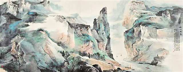 中国山水画,半源起潇湘。“潇湘”一词,最早见于《山海经·中山经》。从中国美术史的角度来看,董源的《潇湘图》因受到历代文人墨客的大加推崇,故而成为中国文人山水画的原典之一。当代国画大家曾晓浒创作的《峡江晴岚》,描绘了三峡两岸雨过天晴的壮丽风光,开阔深远、大气磅礴。关注这位名家已久的湖南郴州文艺评论家李熙斌告诉记者,曾晓浒对中国画的意境创作、意象造型、笔墨韵味等有着极高的造诣。他的山水画讲求“真山、真水、真笔墨”,形成了新潇湘山水的独特风格,展现了湖南山水画的时代特色和人文情怀。
