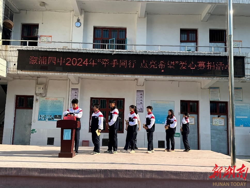 新湖南客户端9月25日讯(通讯员 刘文琳)9月25日上午8点,怀化市溆浦县第四中学操场上空飘扬着鲜艳的五星红旗,全校师生在此集会,共同举行了一场温暖人心的捐款活动,为近期不幸罹患重病的夏同学送上最真挚的关怀与祝福。