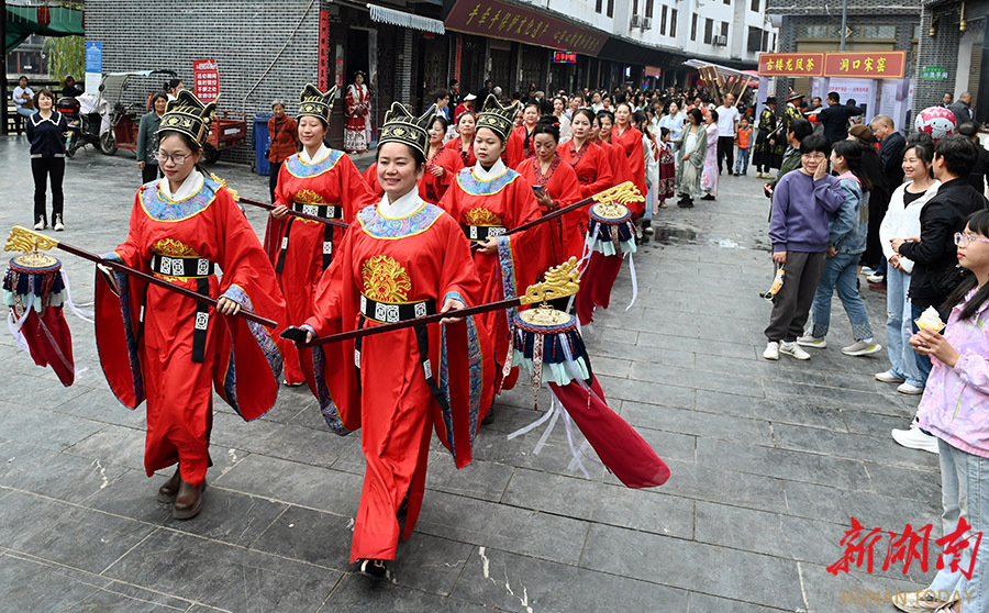 10月26日,洞口县高沙镇长裕社区,民间艺人在展演非遗文化项目。当天,该县举行非物质文化遗产巡游展演活动,让大家近距离感受非遗文化魅力。 滕治中 摄(湖南图片库)