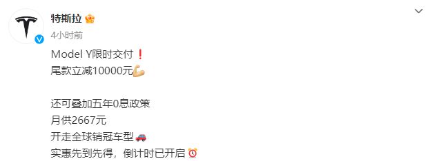 特斯拉方面表示,在特斯拉最新上线的“限时交付尾款立减万元”政策加持下,叠加5年0息金融方案、国家及各地新能源“以旧换新”补贴,买电动车直接省下最少5万元。
