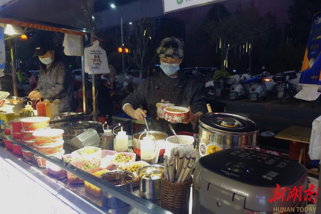 每晚6点半过后,湘西高新区宏大广场旁的人行道便化身夜市街。花甲粉、炒年糕、炸蘑菇、酱香饼、铁板炒饭、铁板鱿鱼等近30种小吃摊整齐排开,摊位后忙碌着的几乎都是年轻人的身影。12月5日,记者采访了其中三位摊主,听他们讲述自己的摆摊故事和摆摊生活。