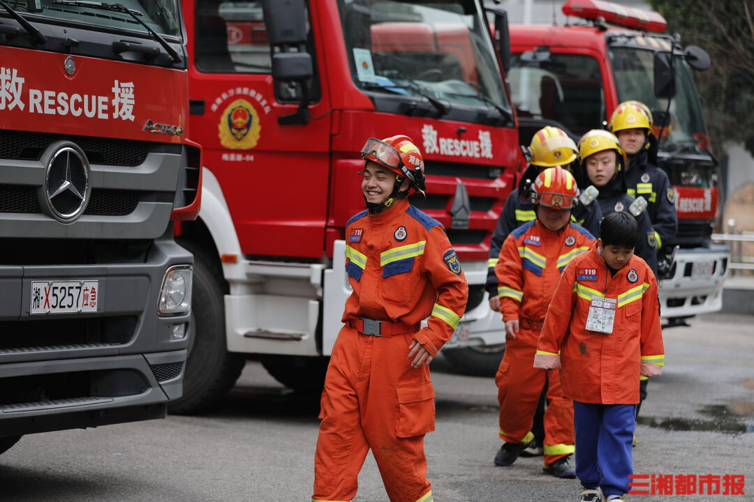 1月18日,来自长沙市春之晖特殊孩子援助中心的一群特殊孩子出现在湖南湘江新区梅溪湖消防中队,体验了一把“一日消防员”,孩子们开心圆梦。(刘丰 龙思言 刘毅 摄)