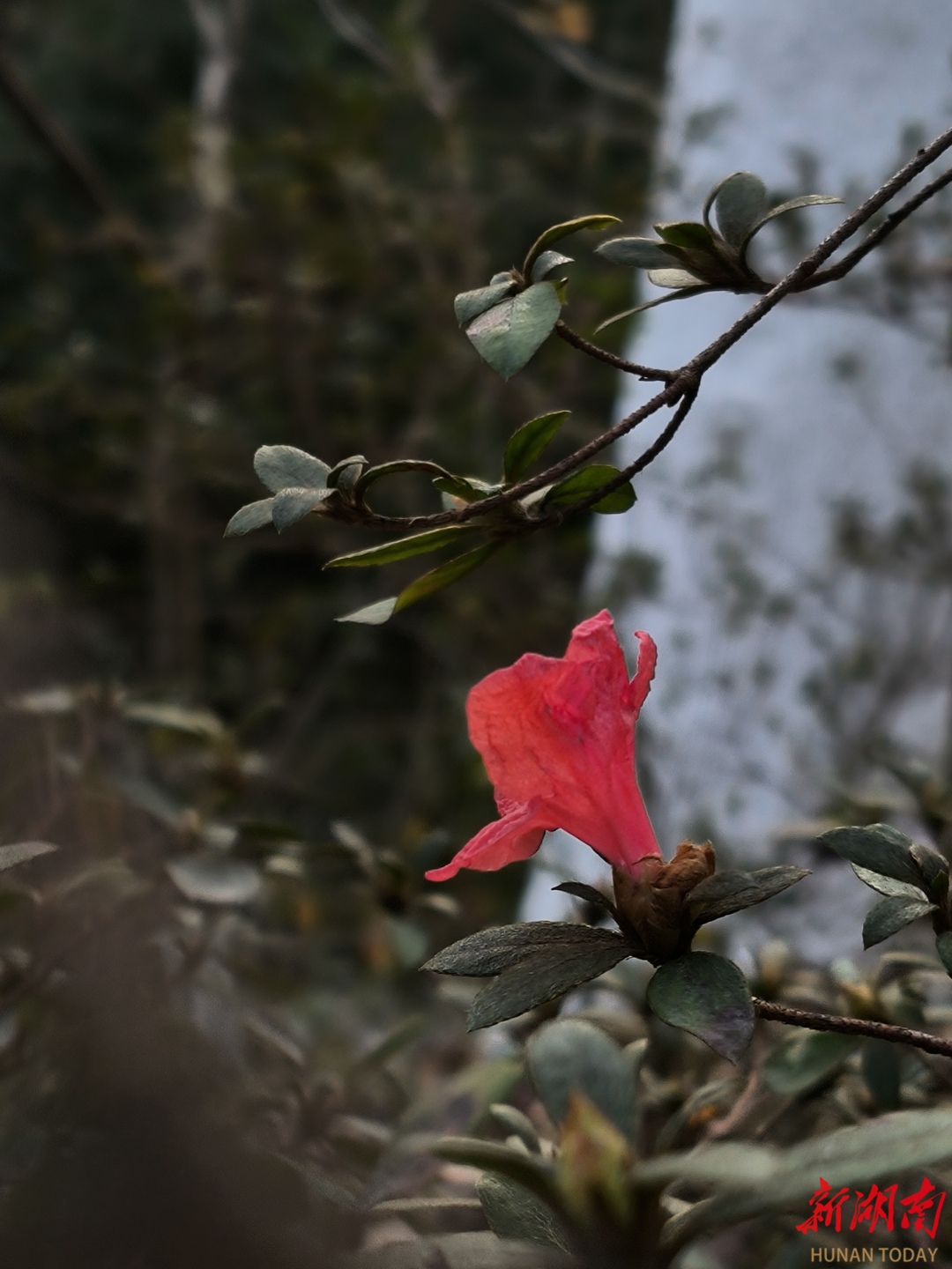 物种物候介绍:在岳麓山发现了一朵开得正艳的映山红,就那么一朵绽放在深冬灌木丛中,让人惊讶和赞叹。与春天看到映山红的感觉不同。也许是反季节开花,物以稀为贵的原因,觉得这朵映山红无比惊艳。她们为何在这个季节绽放呢?