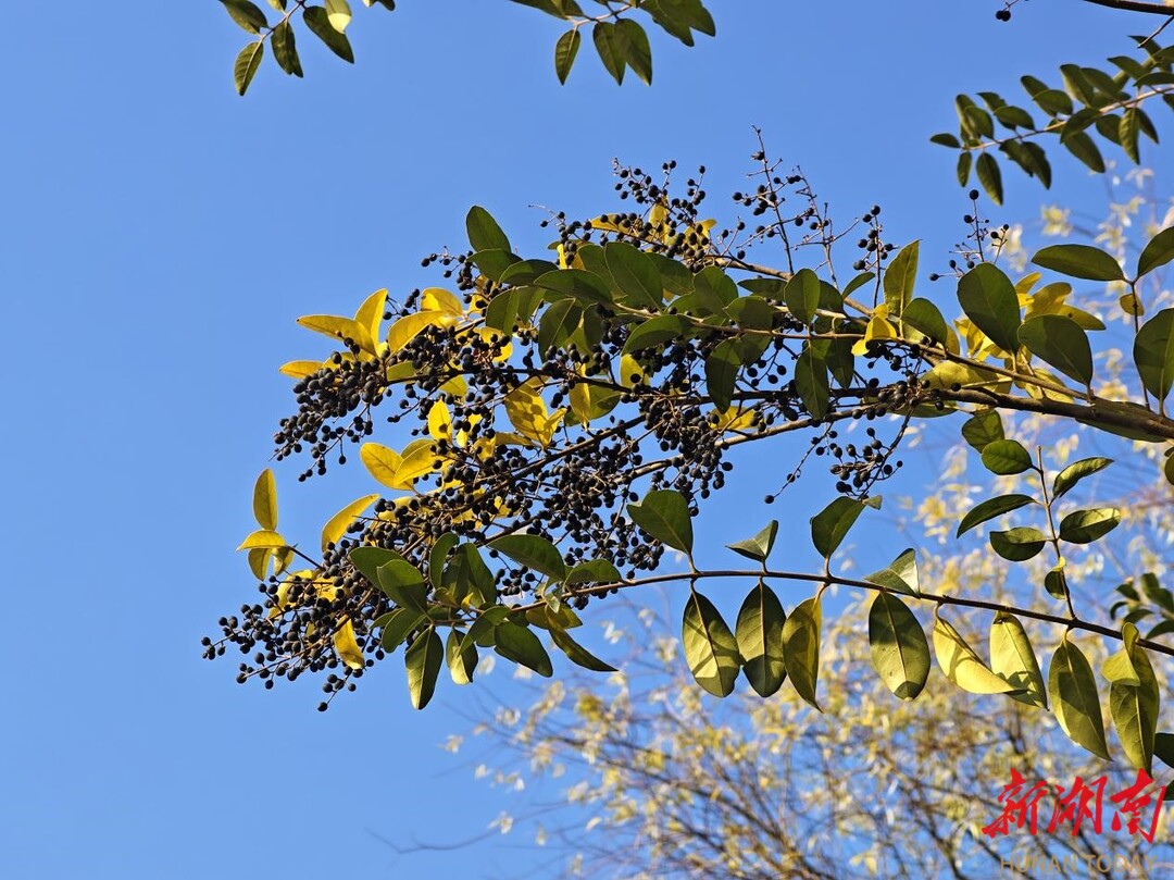 物种物候介绍:小蜡正是硕果累累的时期,看看它成串的黑色小果挂满枝头都压弯了枝条。小蜡的果实和女贞几乎长的一样,但是它的叶片更小更薄,为了区别女贞树被叫做“小蜡”了。他们被叫做“蜡”也是因为它们是最适合放养白蜡虫的植物,白蜡虫幼虫的分泌物能提炼制作蜡烛哦!