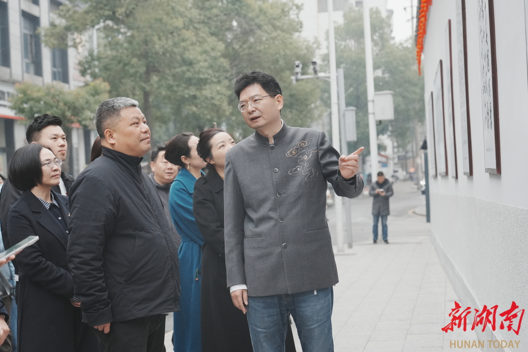 陈刚一行实地察看了诗词文化墙,指出要按照习近平总书记考察湖南重要讲话和指示精神,深刻理解湖湘文化“十步之内,必有芳草”和实事求是的内涵。在毛泽东同志创作《沁园春·长沙》一百周年之际,新民学会旧址进一步丰富新民学会的党史教育内容,发扬红色文化值得鼓励,下一步要持续做好周边环境提质,与新民学会旧址相呼应,强化红色研学思政教育功能,赓续红色血脉,传承好红色基因。