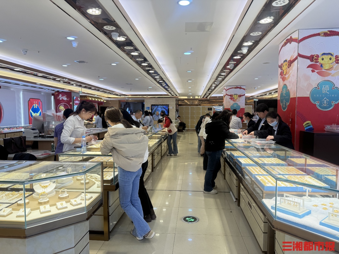 在周六福河西步步高店,不少顾客正在店内挑选金饰。“最近上网发现金价下降不少,想着趁这个机会把五金买了。”家住岳麓区的陈女士告诉记者,之前金价上涨得厉害,面对刚需的婚嫁首饰,她和未婚夫一直持观望态度。“尽管金价没有降到预期,还是选择先下手为强,毕竟黄金一天一个价。”该店店员表示,由于金价下降,来店客流量明显增多,“门店金价克减80元后为795元/克,很多顾客都是冲着金价下降和门店克减来店消费。”