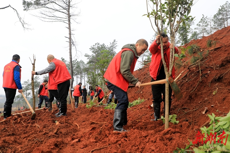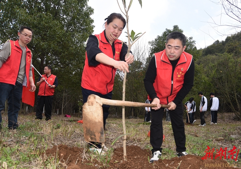 3月11日,邵东市组织千余名干部群众和志愿者在流泽镇两兴村开展义务植树活动。植树节来临之际,我省各地开展植树活动,为春天增绿添彩。李世近 摄(湖南图片库)