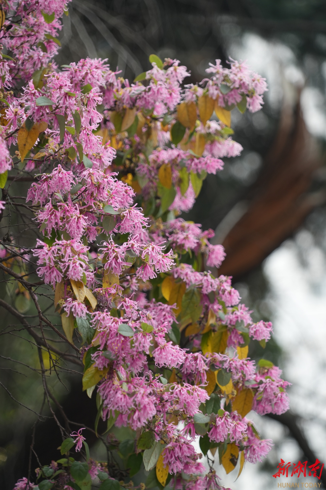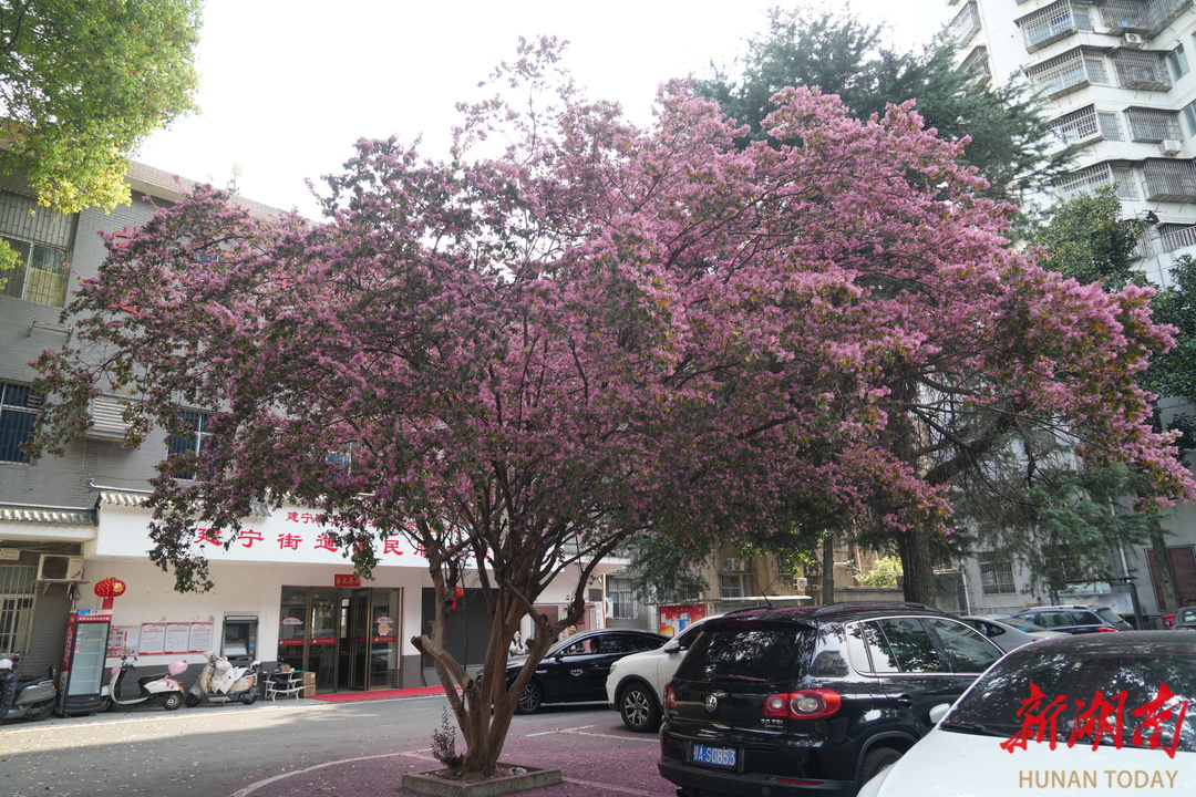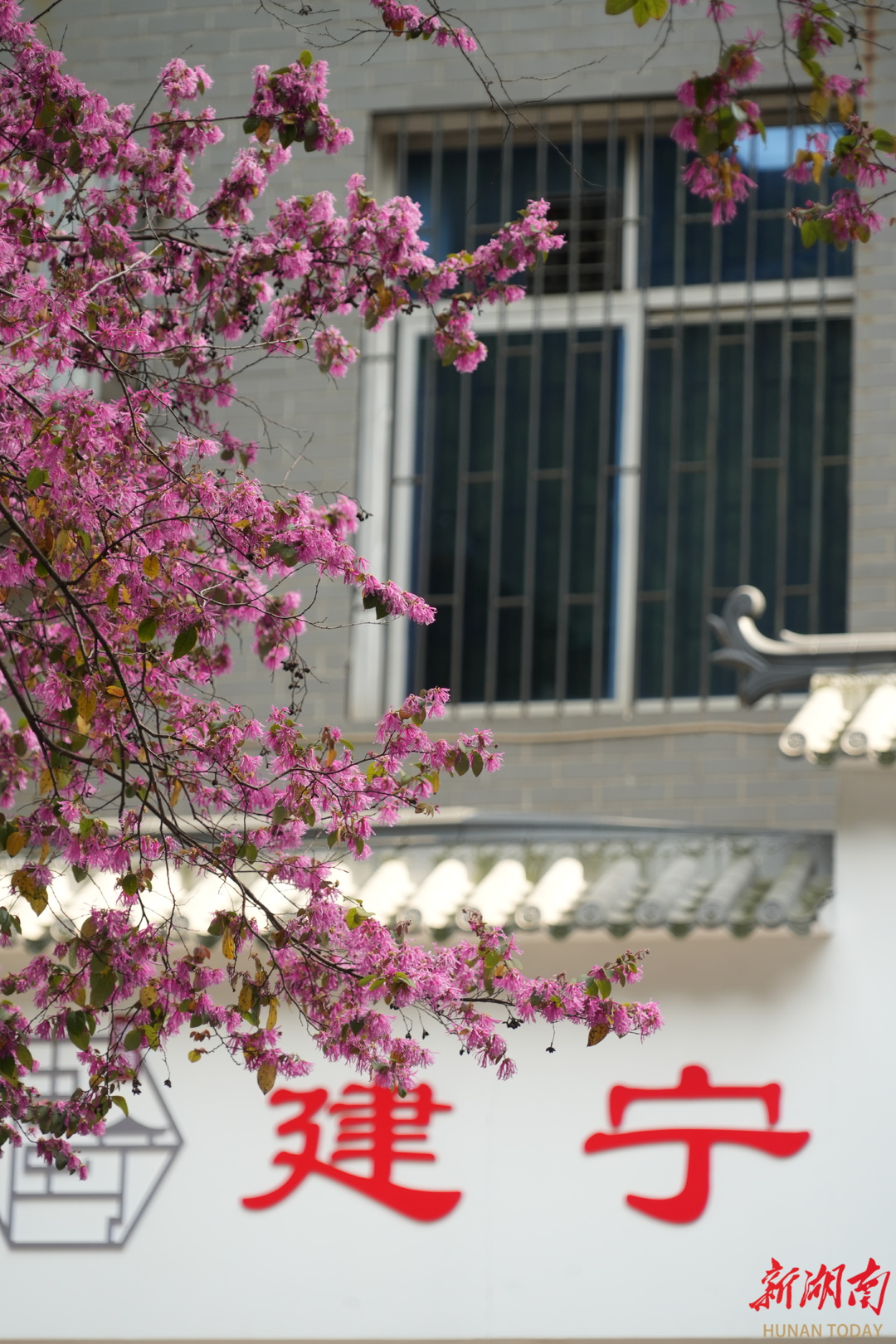 3月24日,芦淞区建宁街道便民服务大厅门口,一颗红檵木正在盛开,在阳光下红火夺目。 红檵木源自株洲醴陵,具有深厚的本土特色。花期虽短,但花开时的艳丽与默默奉献的精神值得推崇。 作为株洲市花,红檵木不仅展现了城市的自然风貌,也承载着株洲人民的精神追求与文化底蕴。(全媒体记者 张永琼 摄)