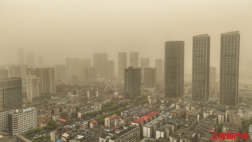 4月12日,沙尘的影响不仅仅局限在北方,也扩散至长江中下游流域。上午10时,长沙的天空已逐渐变黄。部分区域还下起混杂着黄泥沙的小雨。 气象专家解读,沙尘不等于沙尘暴。本次过程中,南方受影响区域大多以扬沙或浮尘天气为主,市民出行要注意防护。(李致远 顾荣 摄影报道)