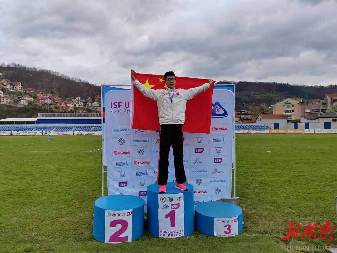 助跑、踏跳、腾空、落地……14.17米!电子屏数字定格瞬间,看台爆发出雷鸣般的欢呼。前不久,在塞尔维亚举行的2025年U15世界中学生夏季运动会田径赛场上,代表中国队出战的长沙望城初三学生袁鑫凯斩获男子三级跳远冠军。在此之前,他还夺得了男子跳远项目的季军。