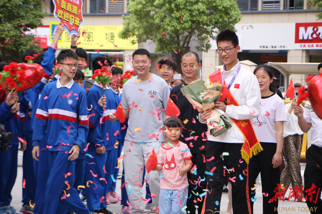 4月15日晚,袁鑫凯凯旋回长,师生、家长为其举办了盛大的欢迎仪式。他说:“手中沉甸甸的奖牌还在微微发烫,我的心跳声仿佛还停留在沙坑前那决定性的一跃。”