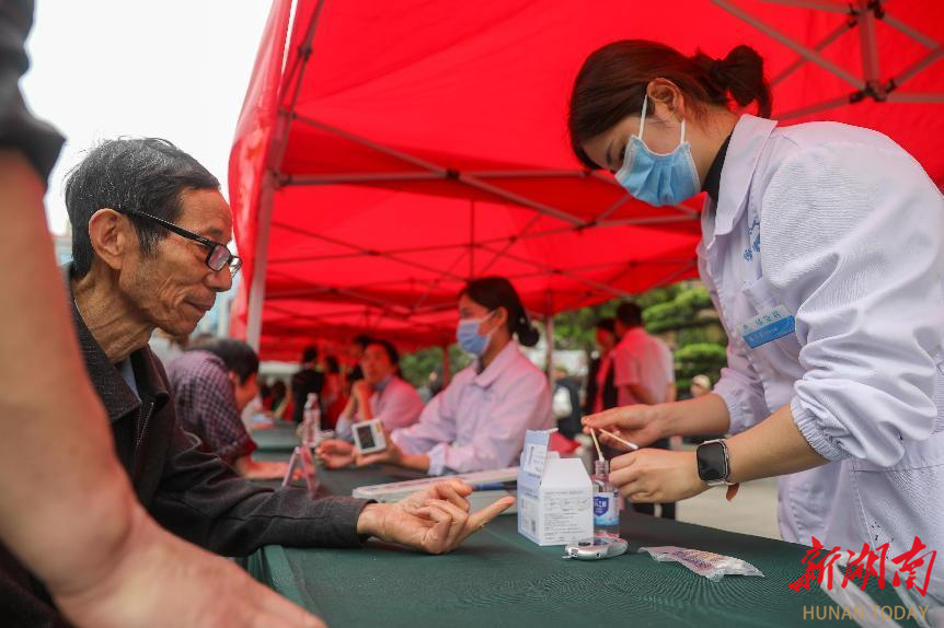 来自衡阳县人民医院的3位专家,免费接受市民健康咨询,提供测血糖、量血压等,还为患者把脉问诊,开具处方。