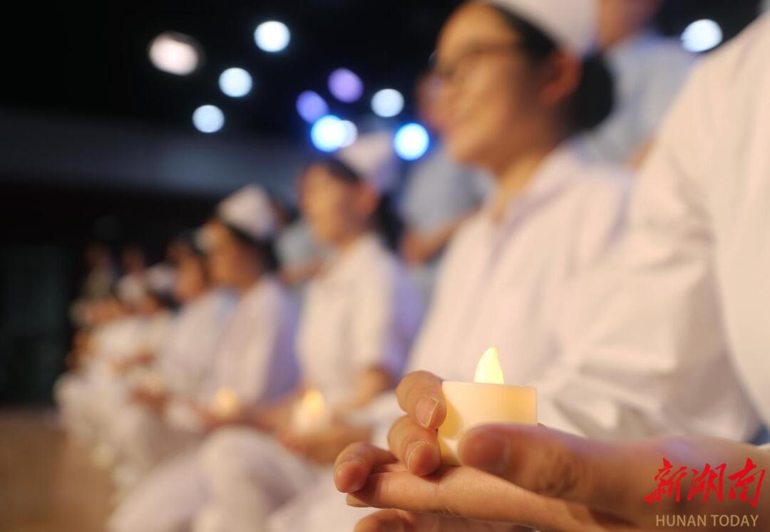 在5.12国际护士节到来之际,5月11日晚,南华大学护理学院为2025届毕业生举行授帽传灯仪式,以薪火相传的仪式祝贺毕业生们正式成为白衣天使,庆祝国际护士节的到来。(曹正平 王祥摄影报道)
