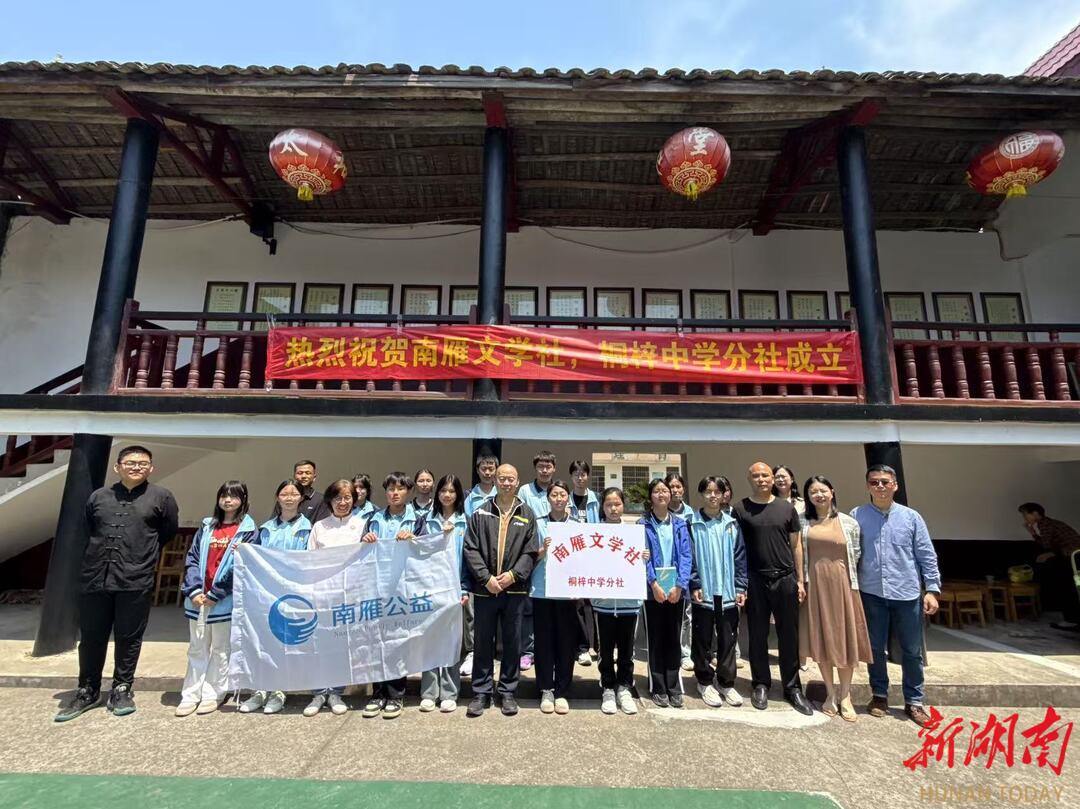 南雁公益发起人谢清送介绍,阅读月期间,南雁公益还通过经典诵读常态化、文学素养培育、个性化阅读方案等形式,推动阅读行动融入教育体系。曲兰镇桐梓完小、金兰镇石坳学校等300余名学生诵读《示子侄》后,立下“读万卷书为中华崛起”的誓言,在“品稻生鲜”劳动基地实践中领悟知行合一;5月11日,“南雁文学社桐梓中学分社”挂牌成立,北大校友捐赠经典书籍并分享“压力中奋进”的成长心得,南雁公益承诺提供长期写作指导,深化文学育人功能;同时,金兰镇诗社、书画协会更以原创诗词墨宝展现乡土文化新活力,这些作品长期展览于图书馆,成为美育与德育的鲜活载体。