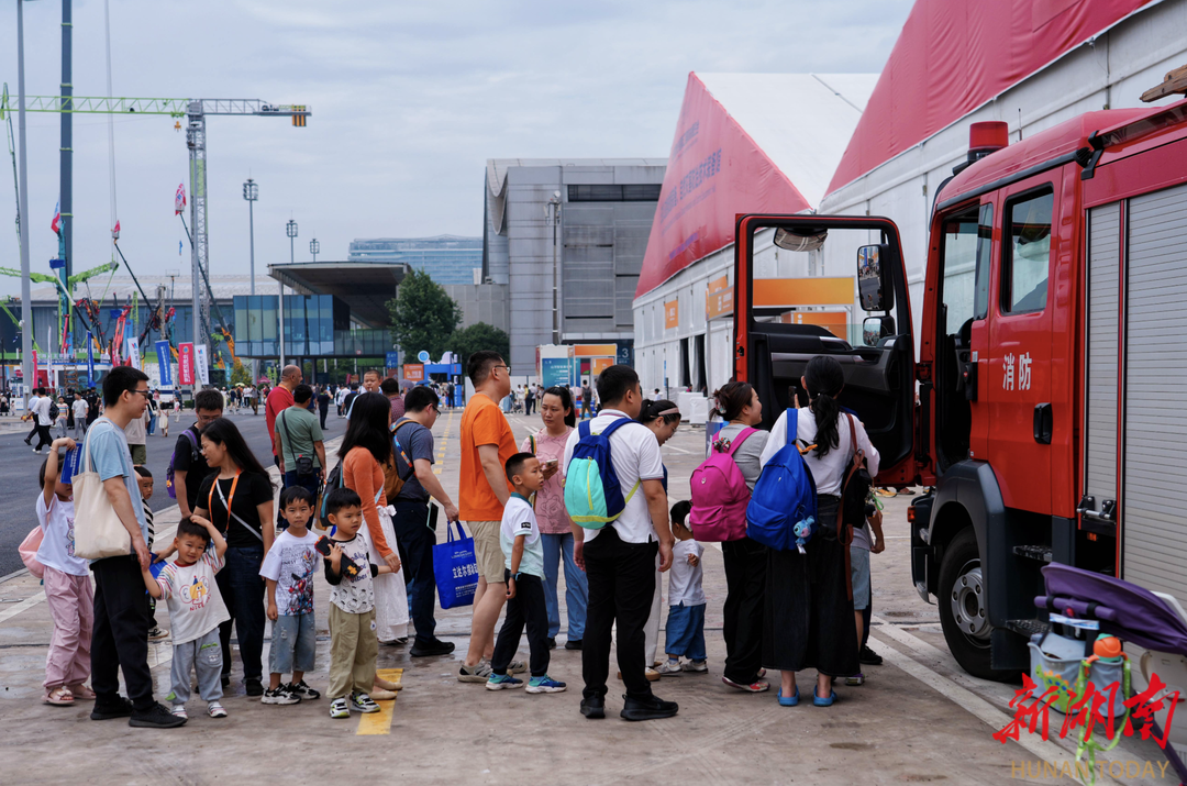 5月17日周六,第四届长沙国际工程机械展览会进入第三天,大批萌娃前来打卡,孩子们纷纷变身机械小能手,迷你挖机灵活操控,吊车搬运趣味十足。不愧是工程机械之都,长沙的小朋友们有自己的机械乐园。(全媒体记者 顾荣 摄)