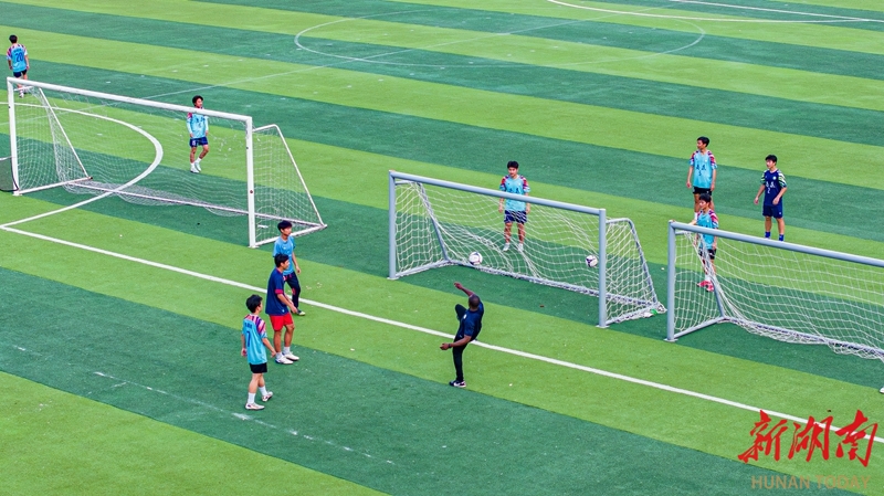 5月20日,娄底市第一中学,学生在进行足球训练。近年来,该市推动青少年文化学习与体育锻炼协调发展,让学生在体育锻炼中享受乐趣、增强体质,不断提高青少年体质健康水平,促进青少年身心健康成长。 湖南日报全媒体记者 童臻熙 于淼 摄影报道