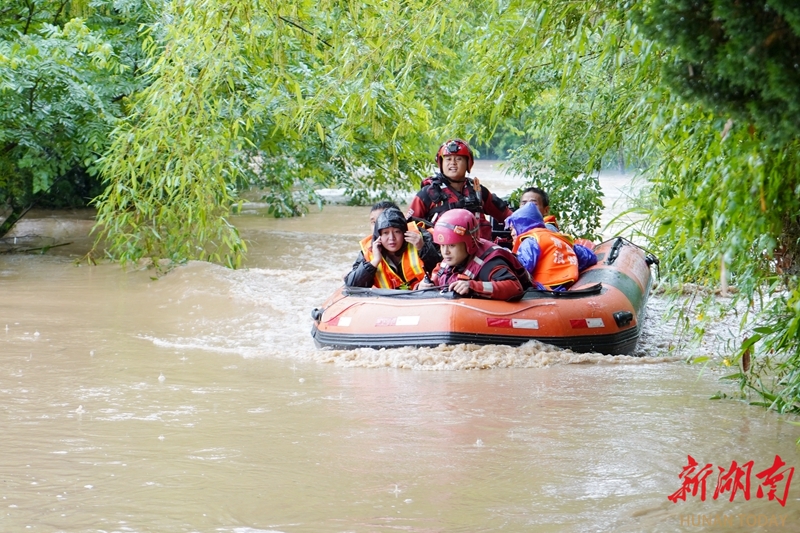 5月22日,救援人员在转移被困村民。当天,受持续强降雨影响,桃源县观音寺镇发生洪涝灾害,县消防救援大队接到报警后立即调派消防力量赶赴现场救援,成功将3名被困人员转移到镇上安全地带,另有32人就地转移到高处安全地带。 陈自德 刘希 摄影报道(湖南图片库)