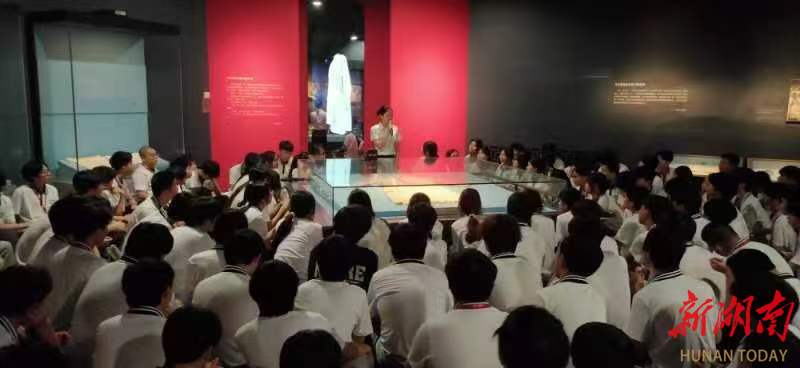 次日,研学队伍走进毛泽东同志纪念馆。馆内丰富的文物、影像和场景复原,全景式展现了毛泽东同志为民族独立、人民解放奋斗的一生。在“农民运动考察报告”展区,同学们通过互动屏幕研读文献;在“开国大典”沉浸式展厅,大家仿佛穿越时空,感受到新中国成立时的澎湃豪情。
