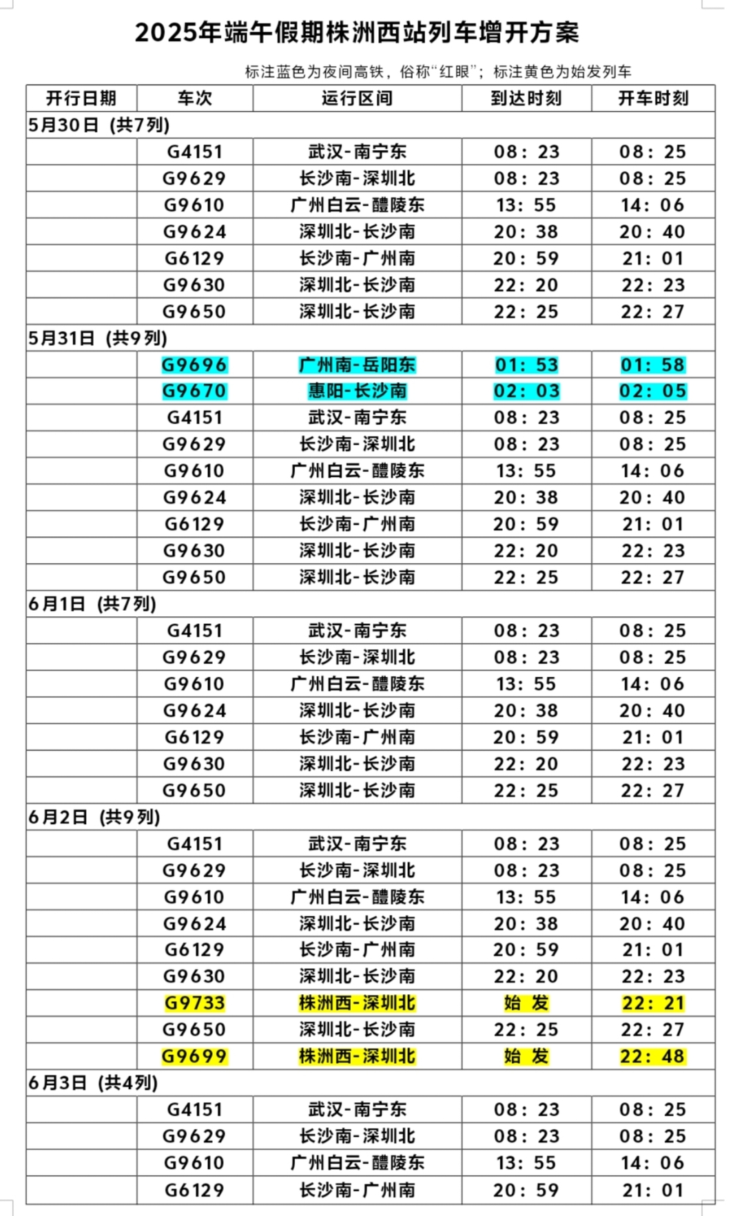湖南日报·新湖南客户端5月26日讯(记者 李永亮 通讯员 包卫华)记者从株洲西站获悉,2025年端午小长假铁路运输期限为5月30日至6月3日,共计5天。