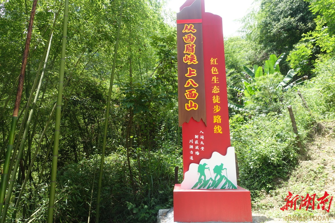 为开发这条兼具生态与历史价值的徒步路线,今年来内溪乡在各级部门支持下,借助长沙市开福区对口帮扶项目,修缮登山步道、设置标识标牌,建设起点、终点及休息区,并邀请专家挖掘整理红色故事,精心打造“从西眉峡上八面山”红色生态徒步路线。