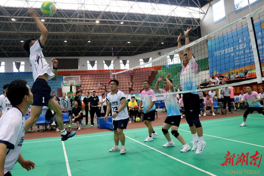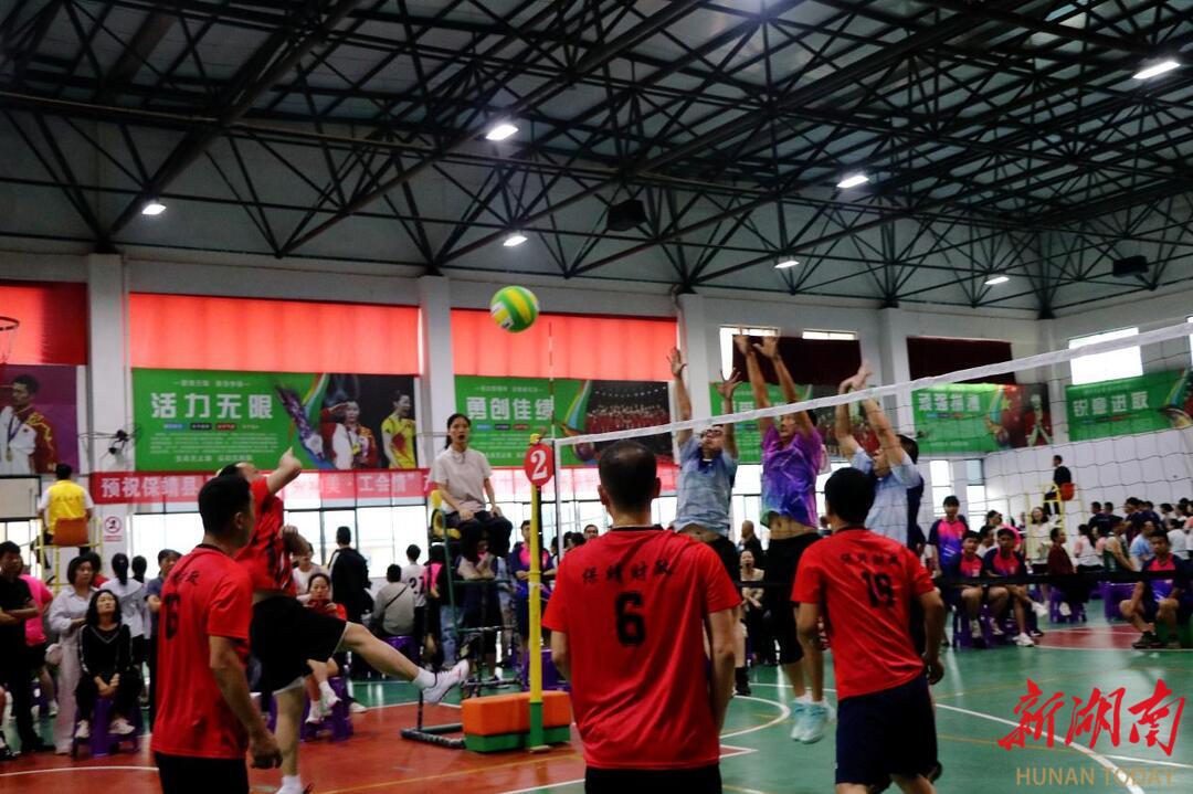 在县财政局与林业局对阵中,两支队伍的比拼扣人心弦。比分紧咬至赛点时,财政局主攻手高高跃起,一记“超手扣杀”直落底线,瞬间点燃全场;林业局队员迅速调整状态,通过严密的双人拦网和二次进攻咬着比分。赛场内外,汗水与欢呼交织,展现出保靖职工敢打敢拼、永不言弃的精神风貌。
